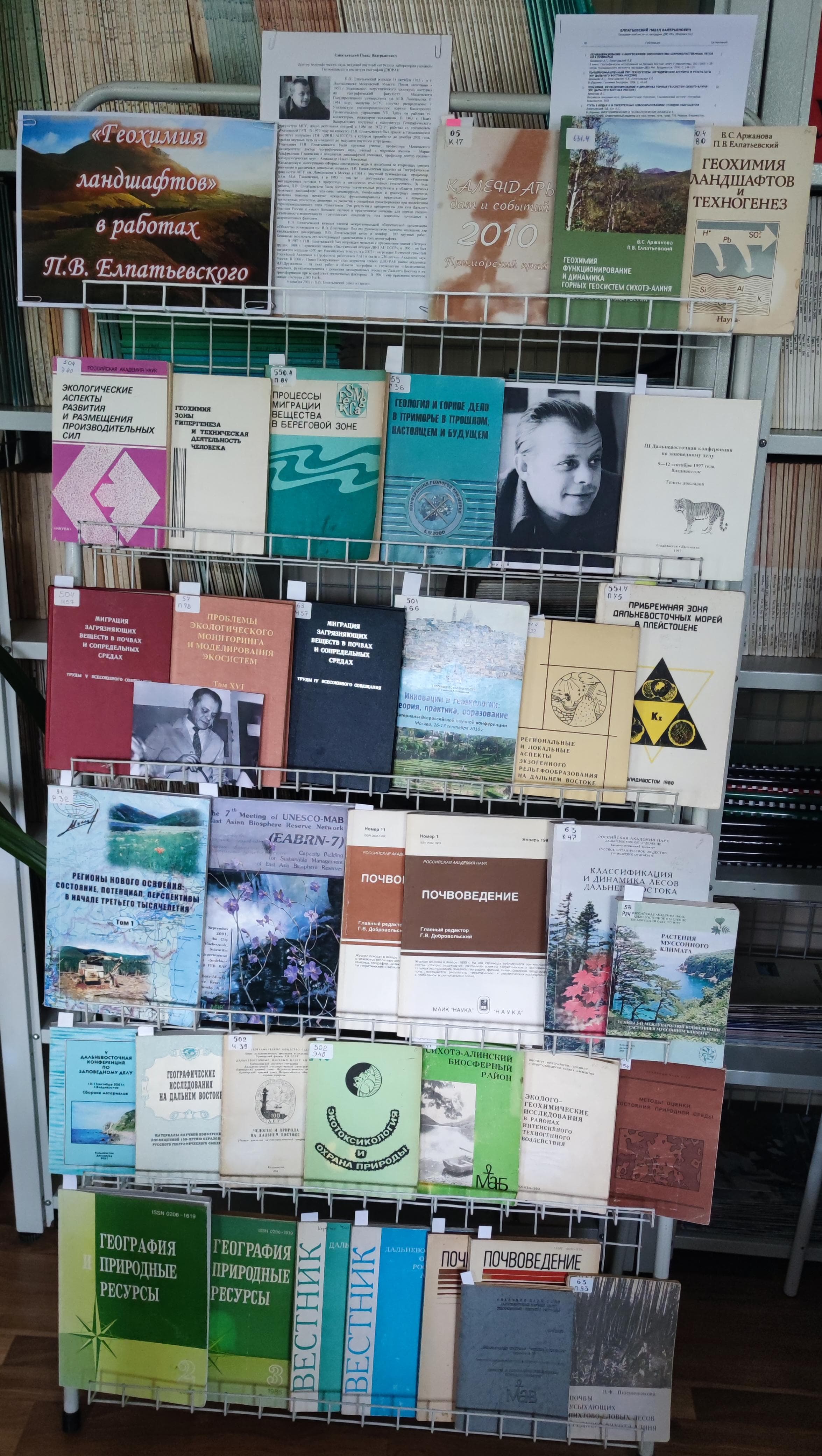 К юбилею Павла Валерьяновича в читальном зале отдела ЦНБ при ТИГ ДВО РАН сотрудники библиотеки представили книжно-иллюстративную выставку: «Геохимия ландшафтов в работах П.В. Елпатьевского».
