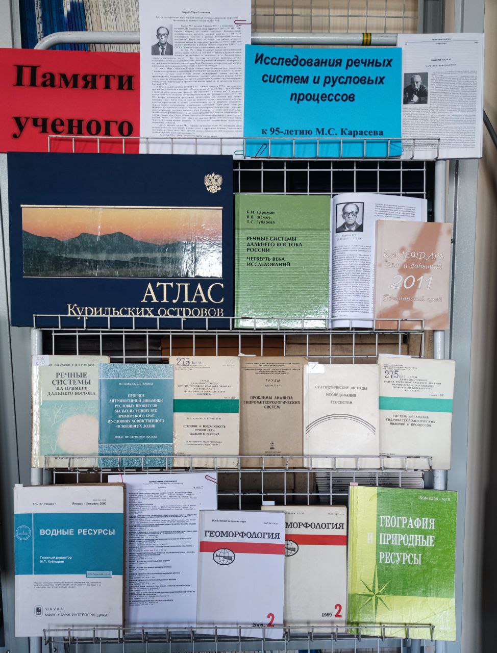 В феврале 2026 года исполнилось 95 лет со дня рождения ученого, доктора географических наук, ведущего научного сотрудника Тихоокеанского института географии ДВО РАН Марка Степановича Карасёва (1931 – 2001 гг.). В читальном зале отдела ЦНБ ДВО РАН при Тихоокеанском институте географии ДВО РАН до 4 марта 2026 г. будет работать книжная выставка работ М.С. Карасева «Исследования речных систем и русловых процессов».