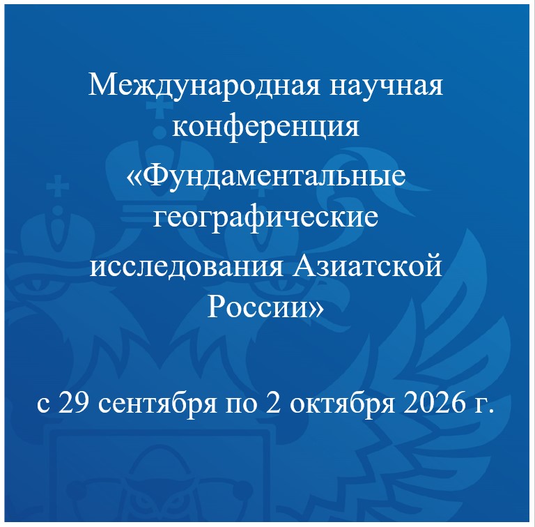 Тихоокеанский институт географии ДВО РАН при участии Дальневосточного отделения РАН, Института географии им. В.Б. Сочавы СО РАН, Байкальского института природопользования СО РАН, Института водных и экологических проблем ДВО РАН – обособленного подразделения ХФИЦ ДВО РАН, Приморского краевого отделения РГО – Общество изучения Амурского края с 29 сентября по 2 октября 2026 г. проводит Международную научную конференцию «Фундаментальные географические исследования Азиатской России», приуроченную к 55-летию ТИГ ДВО РАН, 95-летию со дня рождения члена-корреспондента РАН, директора-организатора ТИГ ДВО РАН (1971-1977 гг.) Андрея Петровича Капицы, 80-летию со дня рождения академика РАН, вице-президента РГО, директора ТИГ ДВО РАН (1991-2016 гг.) Петра Яковлевича Бакланова.